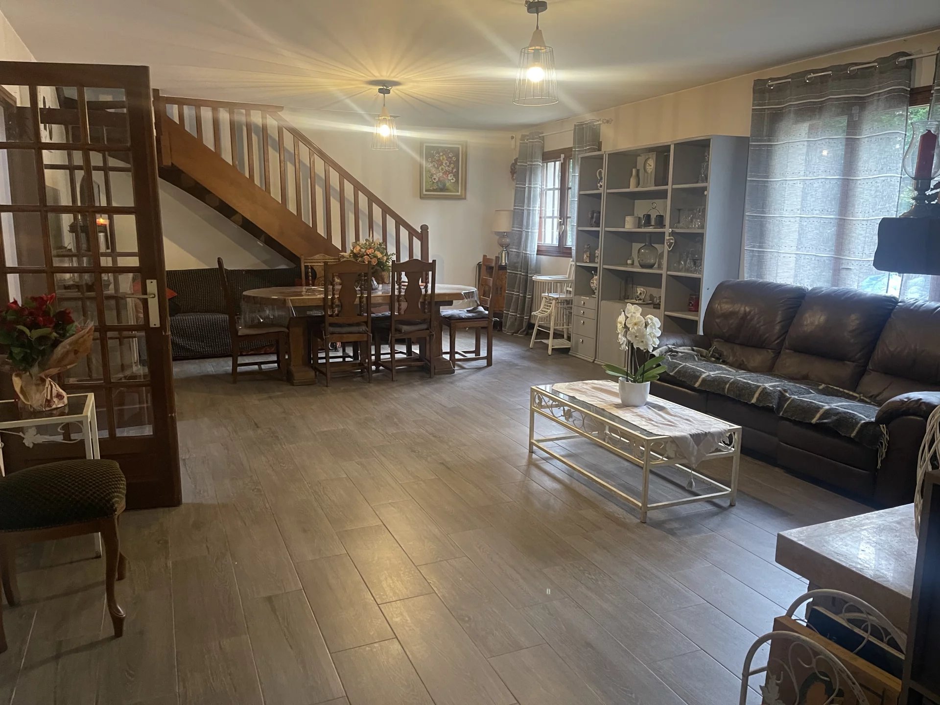 Découvrez cette maison en cœur de forêt à 7 km de Rambouillet. Elle se compose d’une entrée desservant un grand salon/salle à manger de 50 m, une cuisine suivie d’un cellier avec un escalier menant à un bureau, une suite avec son dressing et sa salle d’eau/WC, une chambre ainsi qu’une salle de bain/WC. À l’étage, un palier dessert deux chambres, un dressing, une salle d’eau/WC et un WC indépendant. Un garage attenant complète ce bien. Le tout sur un terrain de 3 496 m², avec un hangar d’environ 207 m², idéal pour le stockage de matériel, de véhicules ou autres. Le prix indiqué comprend les honoraires de l’agence à la charge de l’acquéreur de 4% TTC, soit un prix hors frais d’agence de 543 000 euros. Diagnostic de performance énergétique (DPE) : D – 197. Indice d’émission de gaz à effet de serre (GES) : B – 6. Montant estimé des dépenses annuelles d’énergie pour un usage standard : entre 2550€ et 3480€ par an. Prix moyens des énergies indexés sur l’année 2021,2022 et 2023 (abonnements compris)