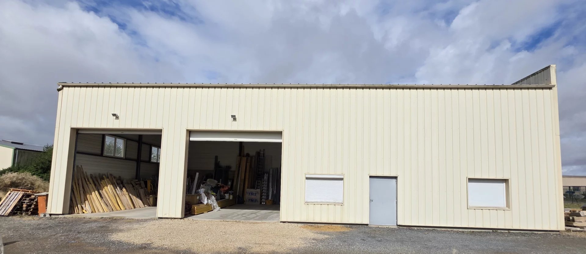 Ce bâtiment est parfaitement adapté à une activité artisanale : stockage, préparation de chantiers, stationnement de véhicules ou atelier.