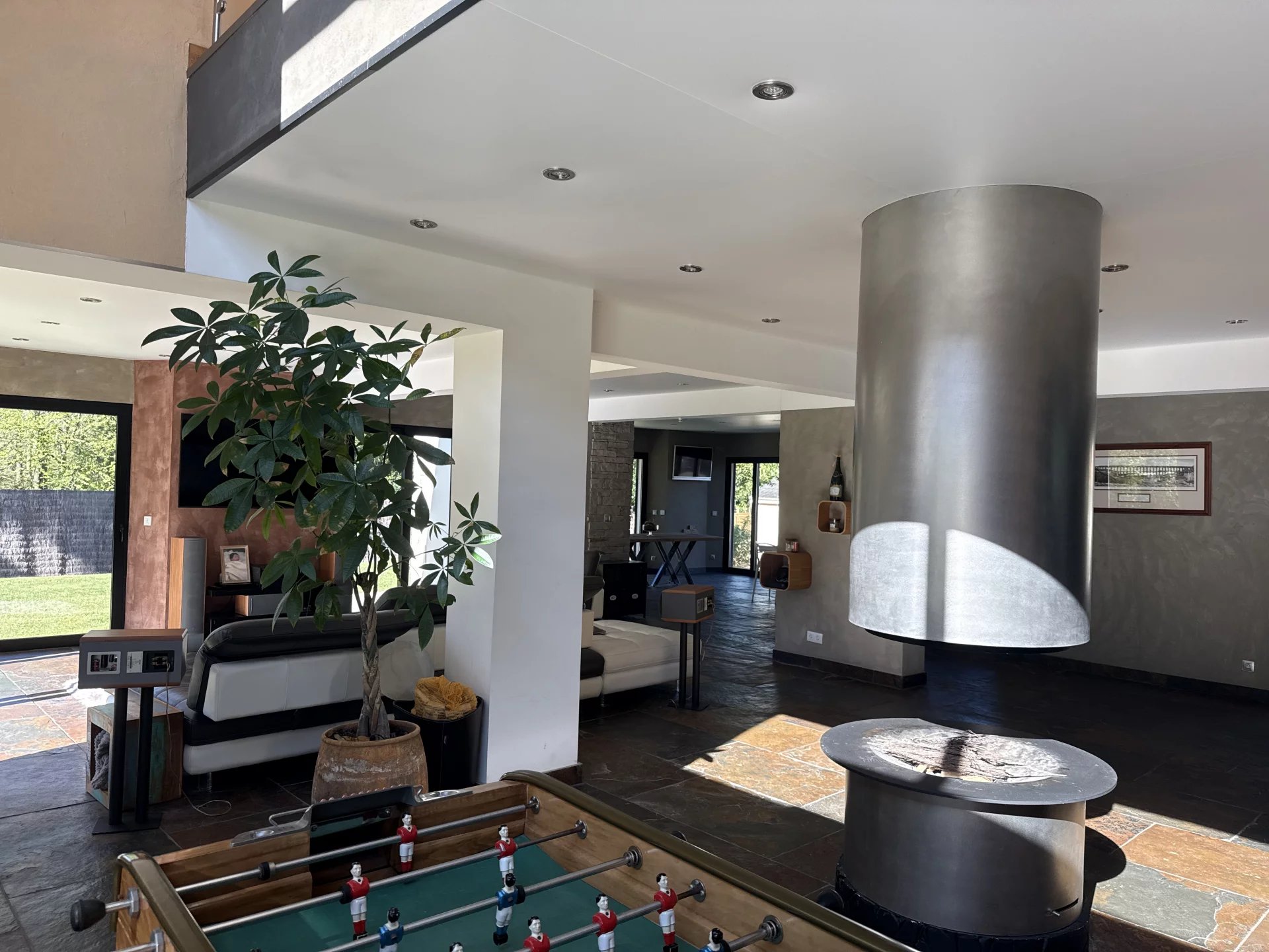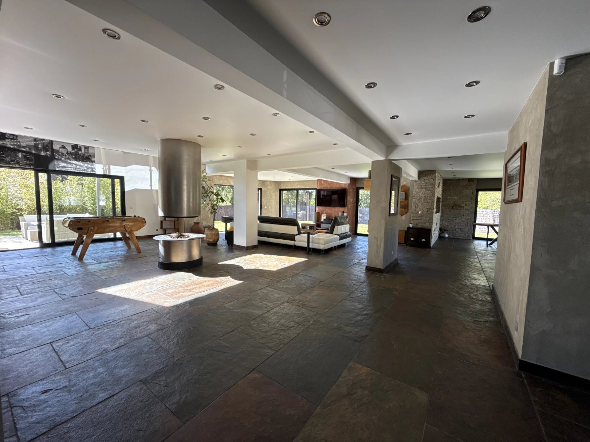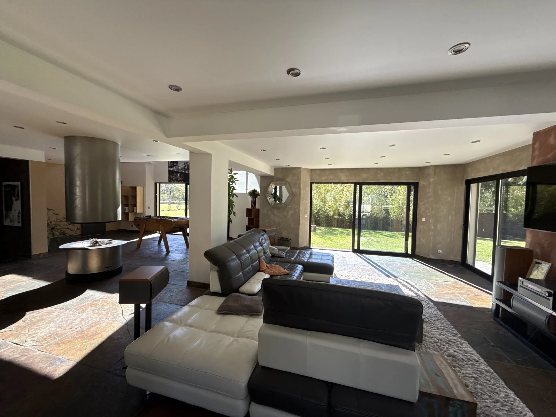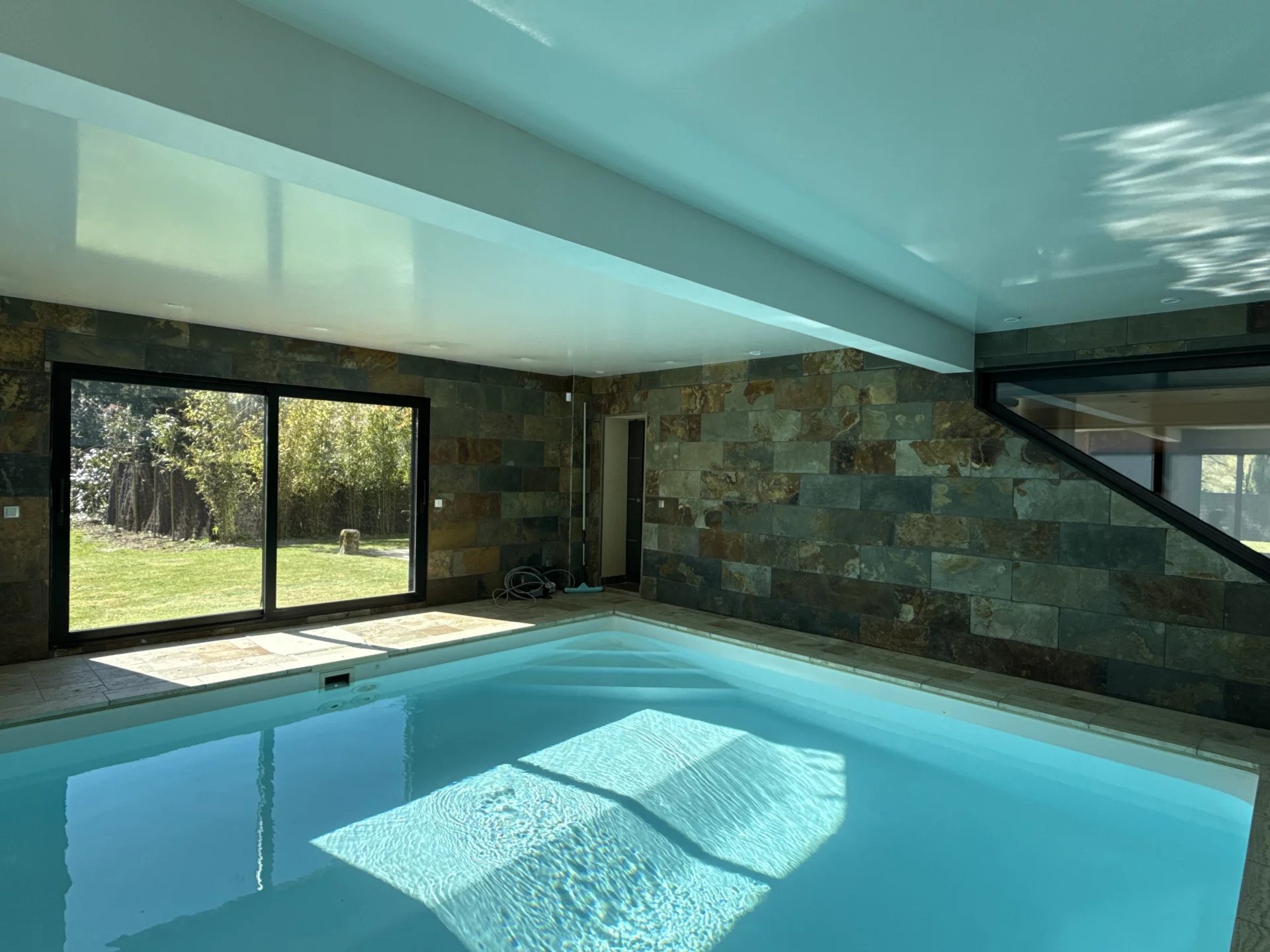 Située dans une impasse pour la tranquillité, cette grande maison moderne construite en 2012 avec des matériaux de très grande qualité vous séduira pour ces grands volumes et sa piscine intérieur donnant sur le jardin. Idéal pour une vie de famille ou chacun trouve son espace privatif, vous retrouvez une pièce de vie de plus de 130 m², un toilette, un vestibule, une piscine de 40 m², un garage double et une buanderie au rez de chaussée. A l’étage une grande mezzanine desservant 3 chambres avec chacune leur salle de douche et une suite avec bain, douche et dressing. Un jardin paysagé de 1800 m² donnant sur la forêt avec une terrasse et sa pergola bioclimatique. Le prix indiqué comprend les honoraires de l’agence à la charge de l’acquéreur de 4% TTC, soit un prix hors frais d’agence de 933 000€ euros.