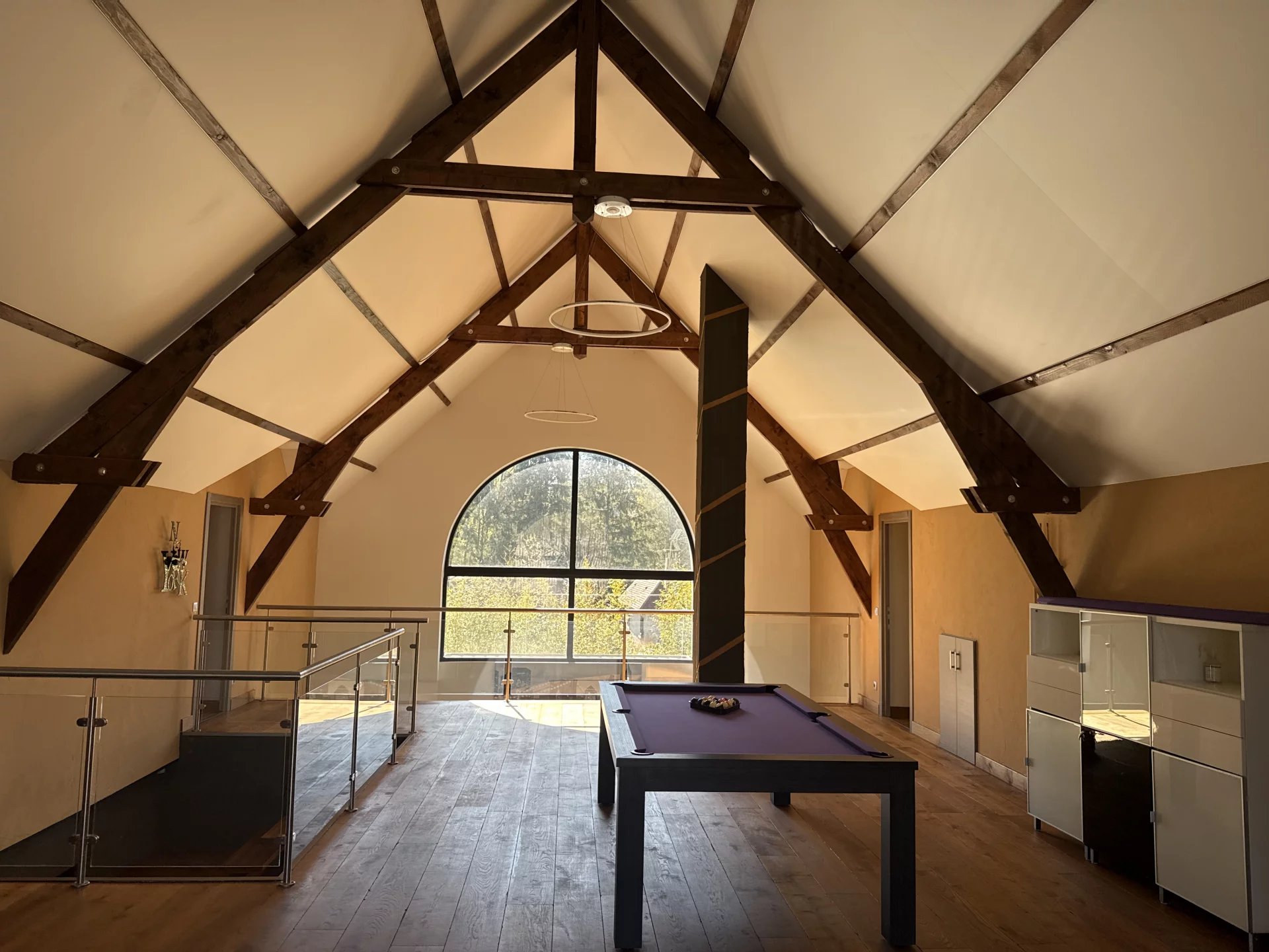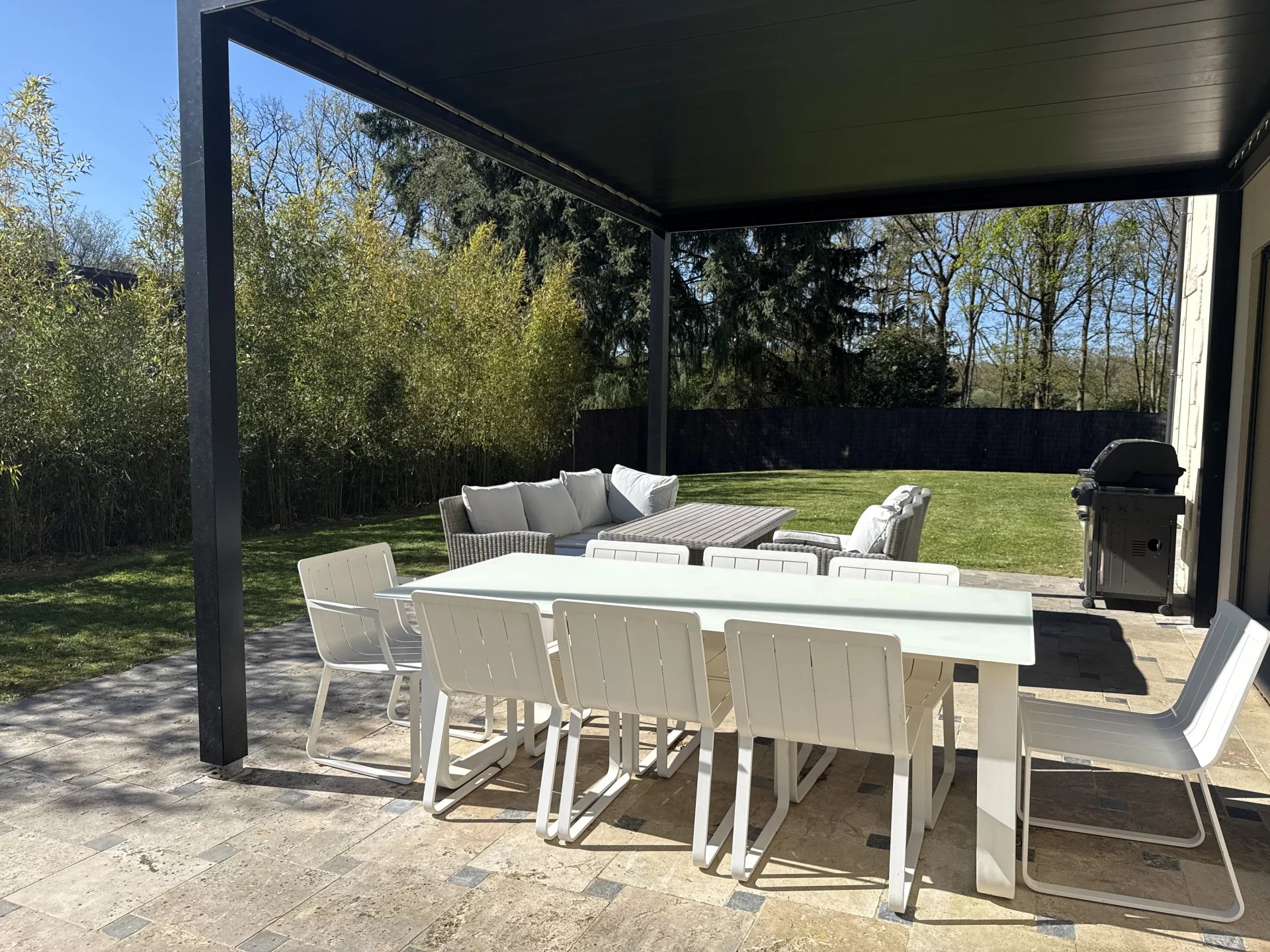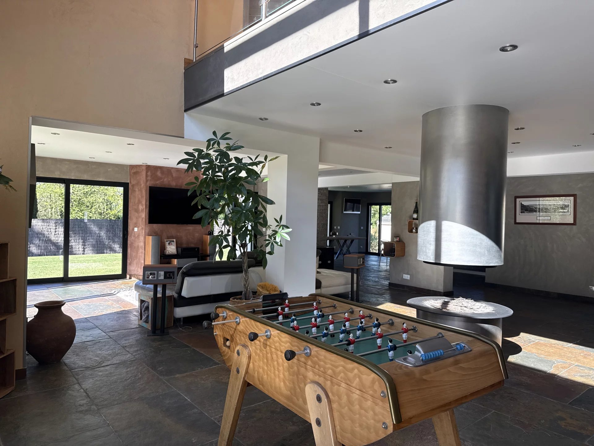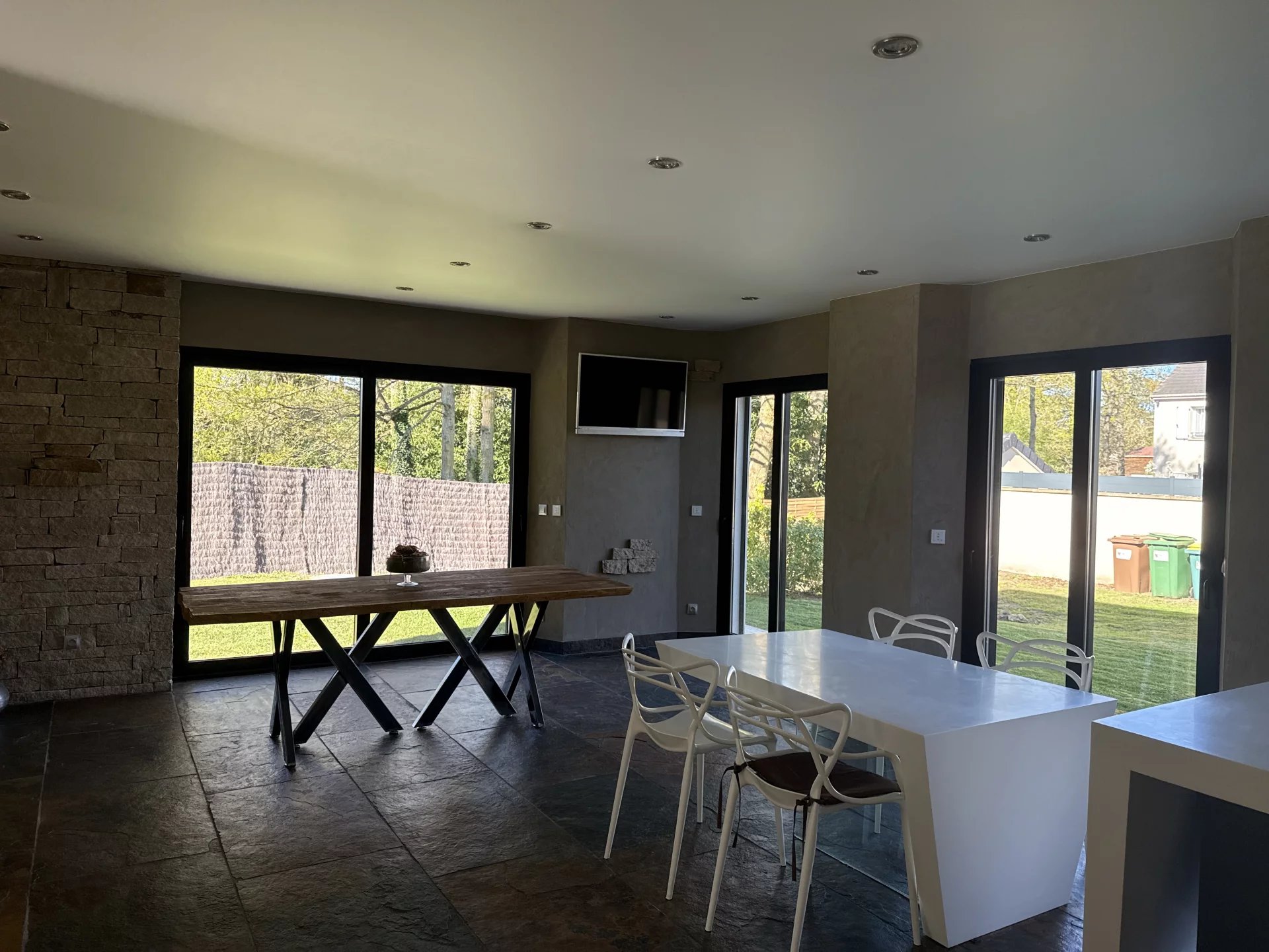 Située dans une impasse pour la tranquillité, cette grande maison moderne construite en 2012 avec des matériaux de très grande qualité vous séduira pour ces grands volumes et sa piscine intérieur donnant sur le jardin. Idéal pour une vie de famille ou chacun trouve son espace privatif, vous retrouvez une pièce de vie de plus de 130 m², un toilette, un vestibule, une piscine de 40 m², un garage double et une buanderie au rez de chaussée. A l’étage une grande mezzanine desservant 3 chambres avec chacune leur salle de douche et une suite avec bain, douche et dressing. Un jardin paysagé de 1800 m² donnant sur la forêt avec une terrasse et sa pergola bioclimatique. Le prix indiqué comprend les honoraires de l’agence à la charge de l’acquéreur de 4% TTC, soit un prix hors frais d’agence de 933 000€ euros.